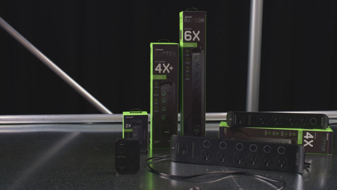 Engineered for high-performance electronics, the Jackson Raptor range delivers elite-level power and protection for modern devices. Designed in Australia, every product features rapid USB-C or USB-A charging with patented high-speed surge protection that clamps down on spikes in less than 20 nanoseconds. From compact dual-port leads to multi-outlet powerboards, Raptor provides robust, reliable power for gaming setups, entertainment systems, computers and high-demand tech environments. Durable, stylish and packed with intelligent safety features, Raptor keeps your devices running efficiently while safeguarding your valuable electronics.
